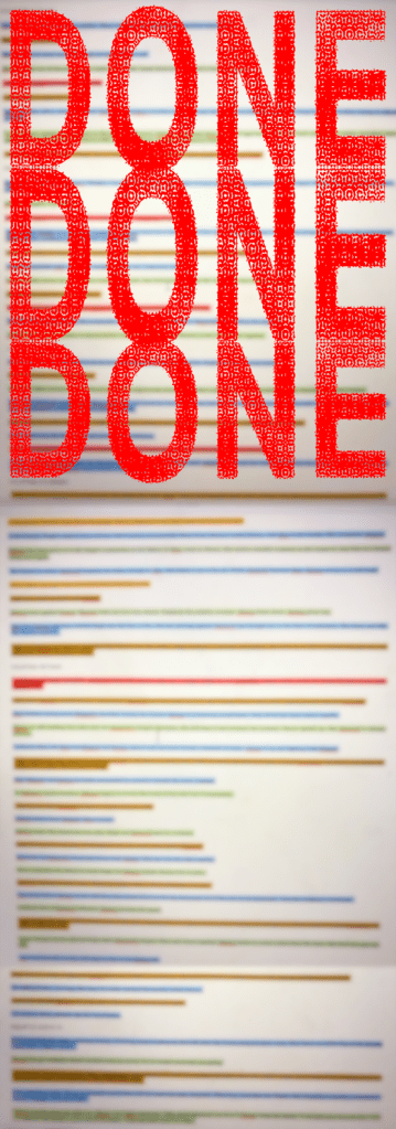 I’ll be gone hunting next week, so my momentum may stall out briefly, but at this point I feel like I can actually see the end, can almost reach out and touch it. It is, as they say, nigh.